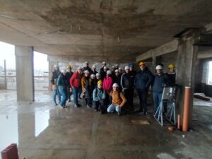 En el marco de las actividades de formación profesional, los estudiantes de la carrera de Proyecto y Construcción de Obras realizaron una visita a un edificio de viviendas en obra, acompañados por el docente Ezequiel Serrot.
